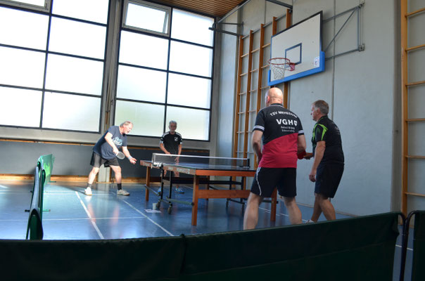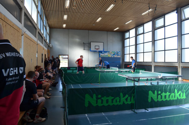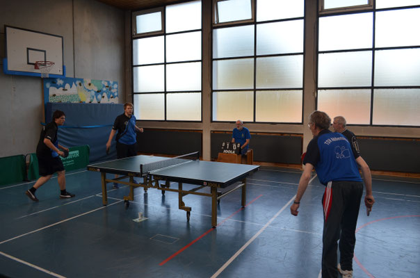 Der TSV Mehedorf blickt auf den Tag als eine weitere gelungene Veranstaltung im Jubiläumsjahr zurück, die nur dank der zahlreichen helfenden Hände so reibungslos verlaufen konnte. Innerhalb des Vereins gilt der Dank zunächst Uwe Skerstupp, Hermann Fahlke und Heiko Hannebacher, die sich maßgeblich um die Organisation des Turniers gekümmert haben. Ebenso hat Stefan Brandt einen wesentlichen Beitrag geleistet: schon früh hat er sich bereiterklärt, die Turnierleitung zu übernehmen und hat hierzu auch die passende Software mitgebracht. Für das leibliche Wohl aller Beteiligten hat an diesem Tag Andrea Skerstupp gesorgt. Sie hat in der Aula der ehemaligen Grundschule den Getränkevorrat im Blick behalten, Würstchen, Kartoffelsalat und die eine oder andere Süßigkeit ausgeteilt, darunter auch selbstgebackenen Kuchen. Nicht zuletzt hat auch der Nachbarverein aus Hönau-Lindorf die Austragung des Turniers unterstützt: Der Verein hat den Mehedorfern zahlreiche Abtrennungen ausgeliehen, damit gleichzeitig an vier Tischen gespielt werden konnte, ohne dass ständig kreuzende Bälle den Spielbetrieb störten. Auch konnten die Zuschauer hinter den Absperrungen die spannenden Spiele bestens verfolgen.